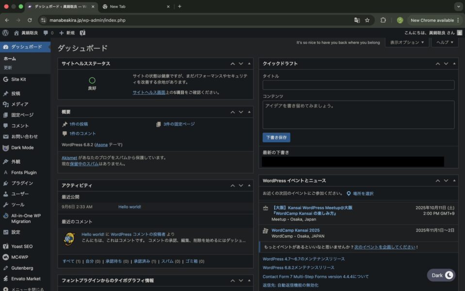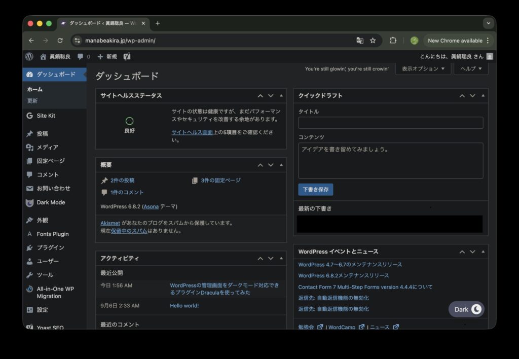 とはいうものの、競合のGhostやnoteに比べると、UIは時代に取り残された「2000年台のネット」という雰囲気にもみえがちではあります。しかし、長年の安心と信頼の上に築かれたプラグイン開発者コミュニティは他に例がなく、オレは今回もWordPress界隈の貢献のおかげで、管理パネルを(無料で)ダークモード対応できました。Web制作業界におけるWordPressの強さの所以をひしひしと感じました。オープンソース万歳!